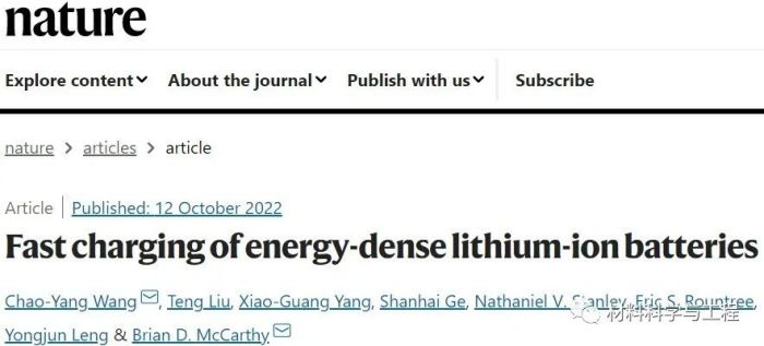 具有富鎳層狀氧化物正極和石墨負(fù)極的鋰離子電池已達(dá)到250-300 Wh kg-1的比能量,可以支持裝配90 kWh電池組的電動(dòng)汽車(chē)(EV)達(dá)到300英里的續(xù)航范圍。不幸的是,由于原材料供應(yīng)有限且成本較高,使用如此龐大的電池來(lái)緩解主流EV的里程焦慮是無(wú)效的。10分鐘快充技術(shù)可以縮小EV電池的尺寸,且不會(huì)引起里程焦慮。然而,高能鋰離子電池(超過(guò)250 Wh kg-1或高于4 mAh cm-2)的快速充電仍然是一個(gè)巨大的挑戰(zhàn)。